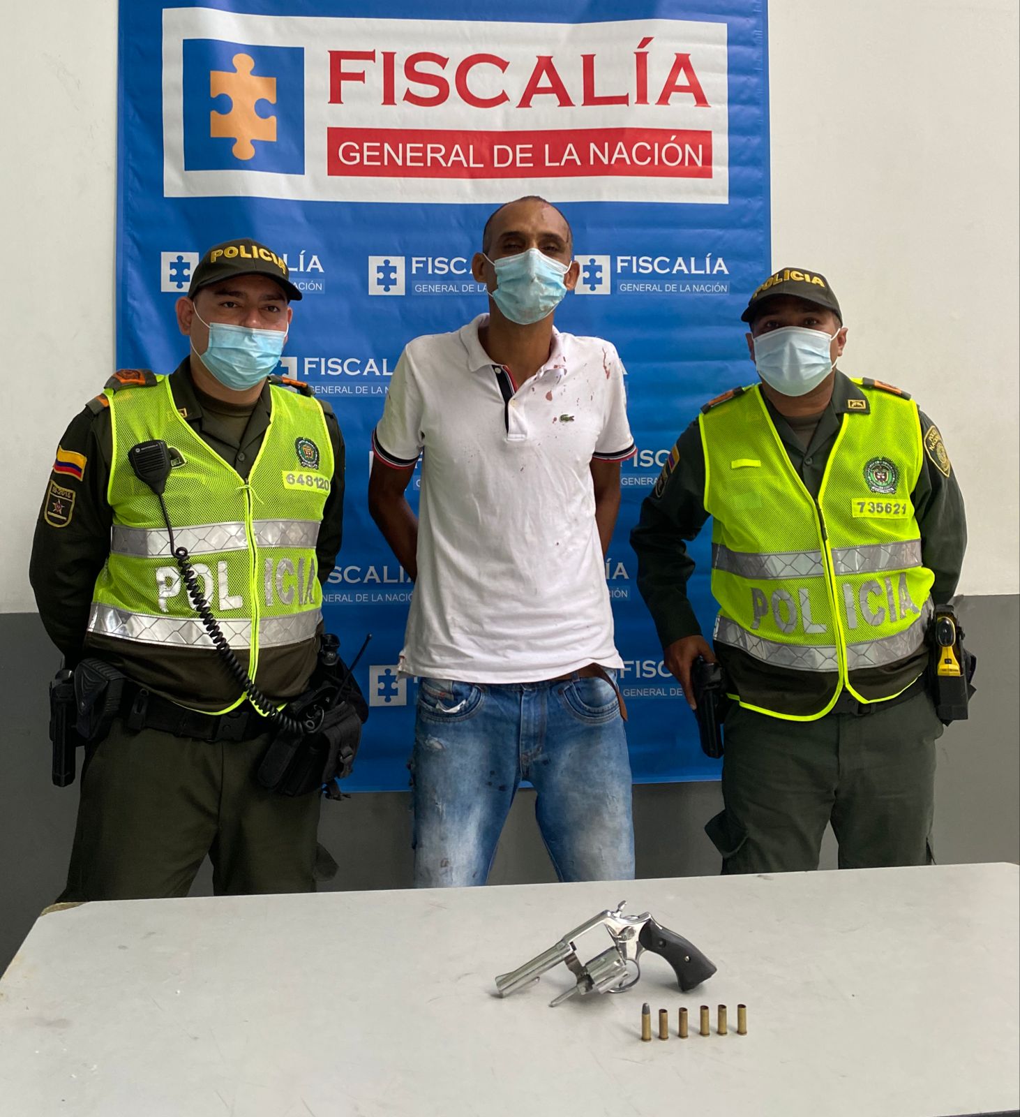 Durante el procedimiento fue incautada un arma de fuego tipo revólver calibre 38 el cual tenía cinco cartuchos percutidos. El presunto delincuente neutralizado no ha sido identificado toda vez que, no tenía documentos de identidad.